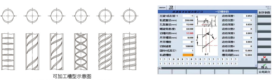 数控系统内嵌入了我公司与西门子公司合作开发的自动编程软件,只需输入轧辊直径、规格等参数,自动编辑生成月牙槽加工程序和刻字程序。减轻了烦琐的编程工作,提高加工效率。